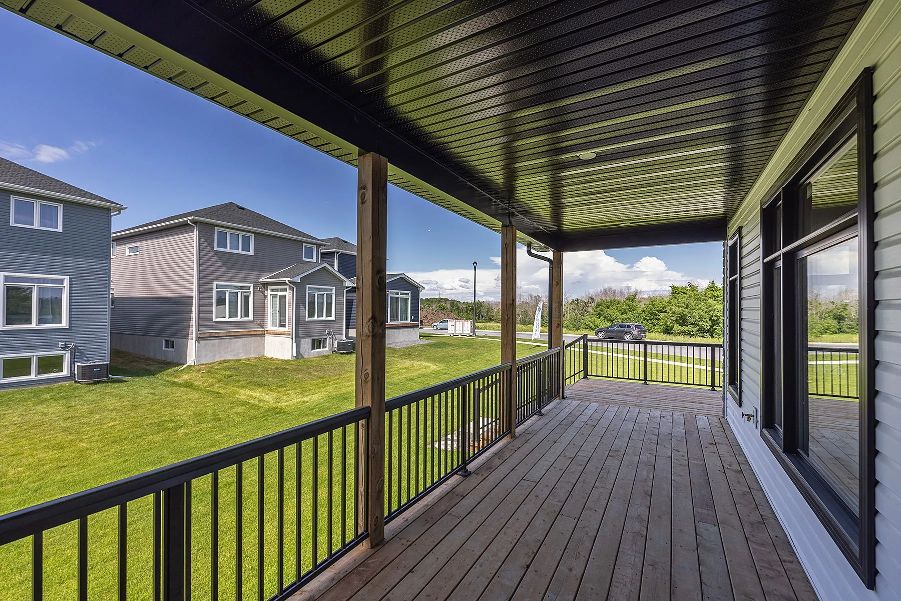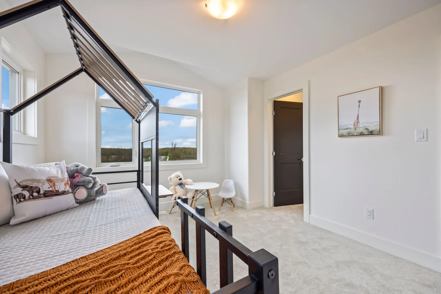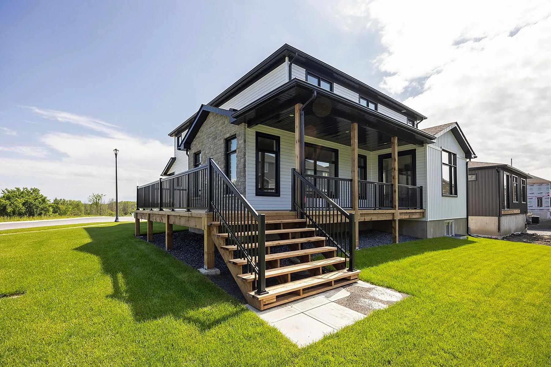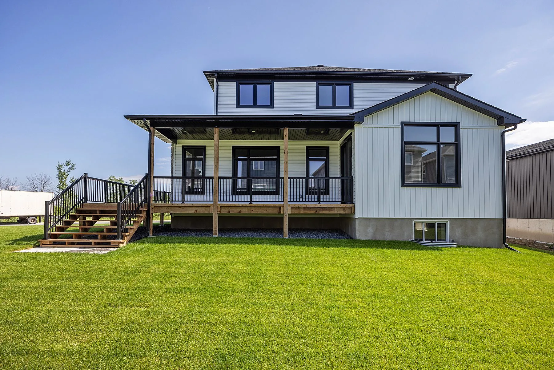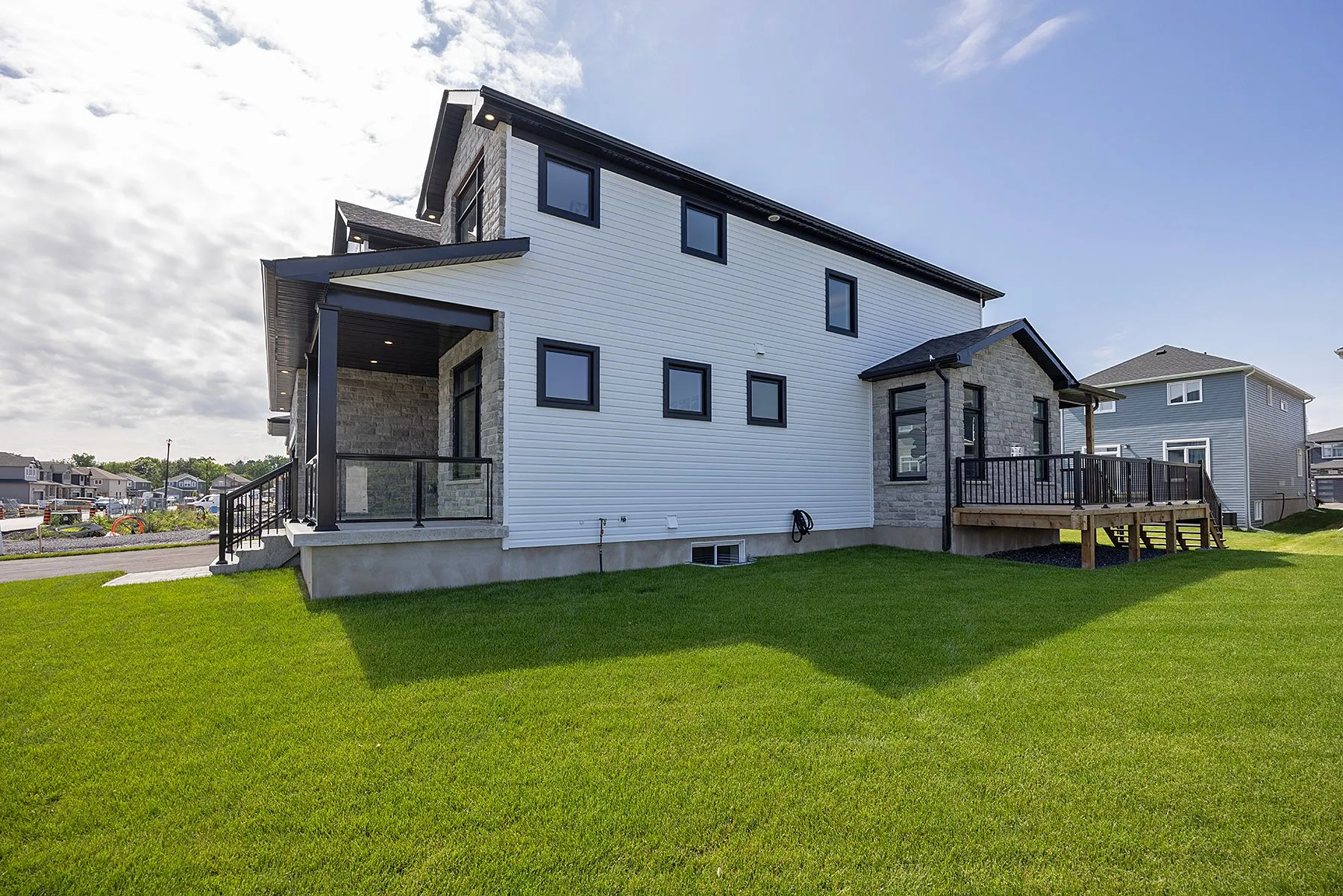 The Custom Quail model built as our model home on a premium corner lot in CREEKSIDE VALLEY PHASE D. The Custom Quail features four bedrooms & two and a half baths. The primary bedroom features a large walk-in closet with a custom closet organizer, ensuite bath with double sinks, glass shower & free-standing tub. Kitchen features include a large island with eating bar, wine cubby and wine fridge, elevated upper cabinets, deeper fridge upper with gable, upgraded quartz countertops, custom curio cabinet with lighting, custom shelves on either side of the range, integrated range hood & cabinet. The kitchen is open to the dining nook with cathedral ceiling & great room with lots of windows for natural light, gas fireplace & cathedral ceiling. A large laundry/mud room with an entrance directly to the garage, a main floor den/office just off the foyer complete the main floor. The large basement is unfinished with drywall on exterior walls and rough-in plumbing for a future bath. The exterior features a large front porch and wood wrap around deck in the rear and side yard.