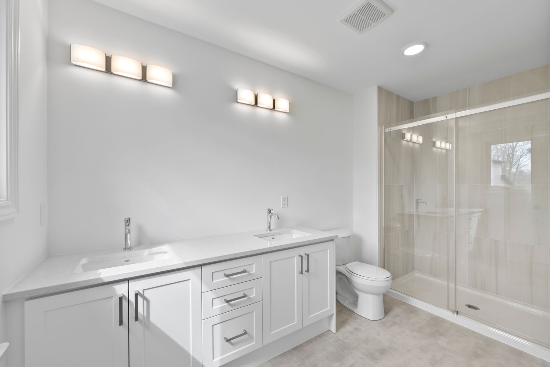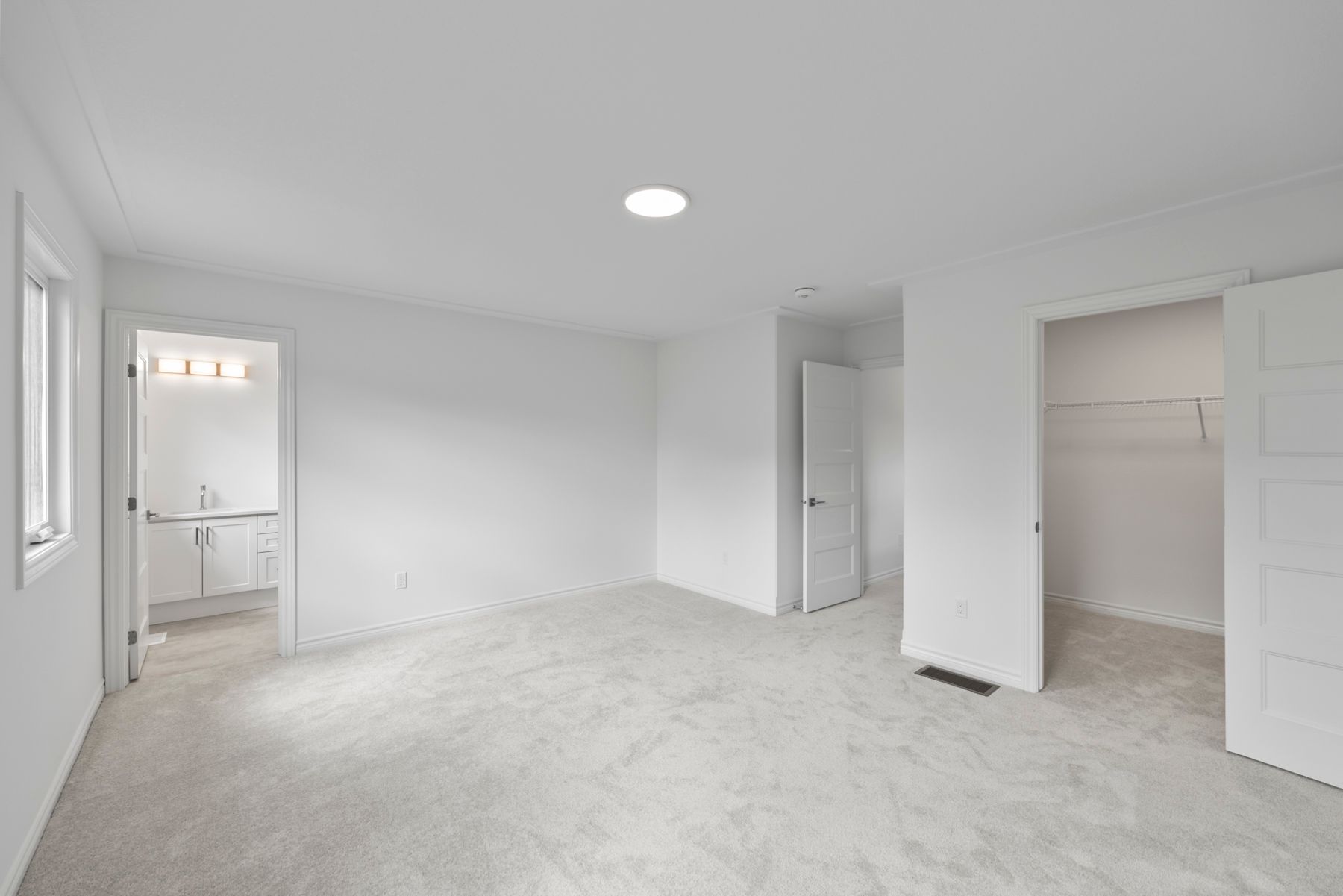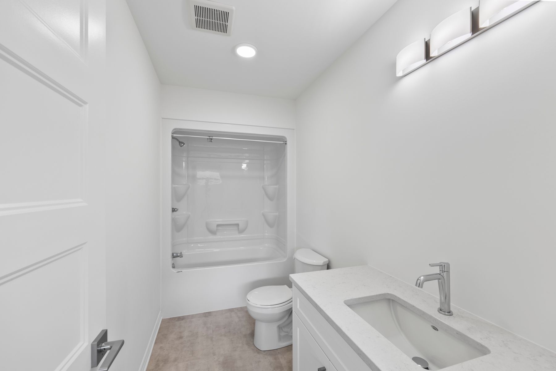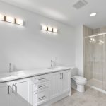 There are 4 bedrooms located on the second floor. A main bath with linen closet and one-piece tub/shower unit is shared between the additional bedrooms. The primary suite is ample in size and includes a large walk-in closet and it’s own ensuite bathroom. Ensuite bath features double sinks and a one-piece tub/shower unit standard.